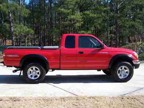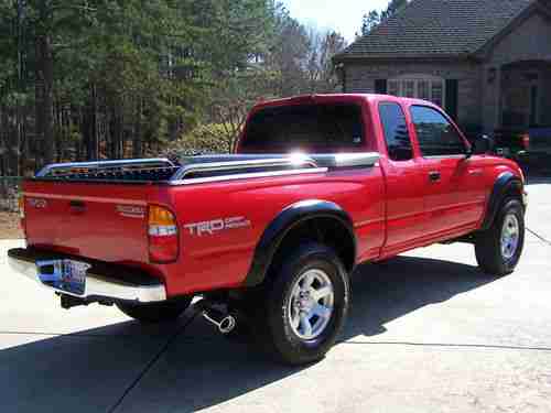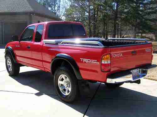 Up for auction is my very clean and fully loaded 2001 Toyota Tacoma SR5 PreRunner with the TRD package. I just bought a new truck and have no need for a second vehicle. It is a V6 with automatic transmission and equipped with the SR5 and TRD offroad package. The air conditioning and heat work excellent. It has a sliding rear window, power windows and door locks, tilt wheel, cd player with mp3 and remote, bedliner, low profile toolbox with keys, bed rails, towing package, etc. The tires, brakes, and rotors are like brand new with only 3k miles on them. This truck has never been offroad and has always been garage kept. Feel free to contact me with any questions. Clear title in hand. Thanks for looking and good luck!