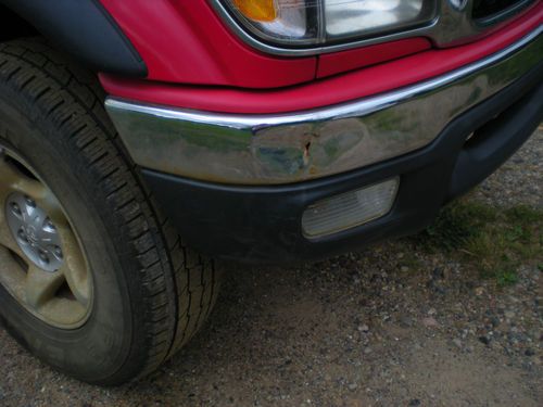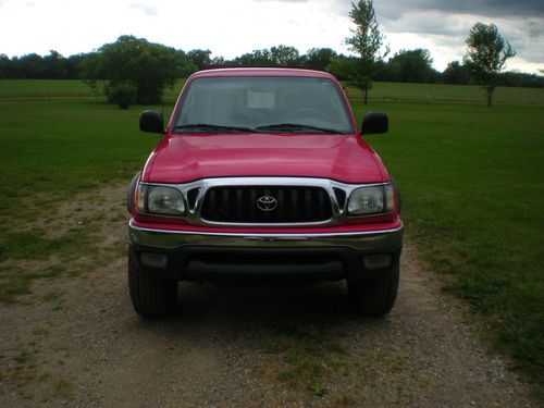 2003 Toyota Tacoma 4x4 x-cab red pickup for sale by original owner. It has been very reliable, my daily driver and a great truck. It has many more miles left in it and is in good mechanical condition with no known problems. It does have many small scratches from wear and use, and about 4 longer scratches. The bed has many scratches but very little rust. The bumpers have a little rust and the front bumper has a dent about 2"x2" from a parking lot bump in Feb 2013.