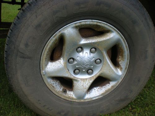 There is a red aluminum cap that still works but is missing the 2 rear windows. The tailgate is very good with no rust known. The sliding rear window is missing and there is a plexiglass piece there. The seats are generally good except one 2" long tear on the passenger seat side. It is smoke free. The air conditioner works but may need to have coolant added as it does not get really cold. Overall, it has wear and tear expected with the age and mileage.