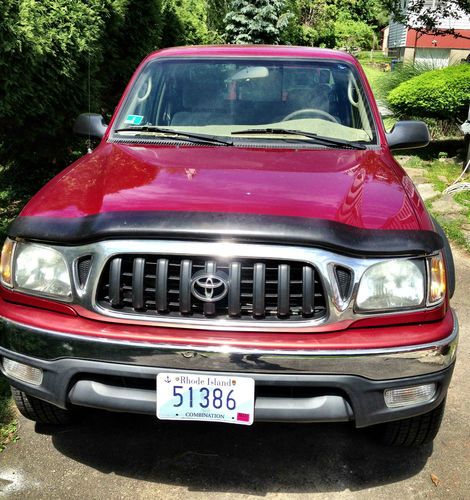 2004 TOYOTA TACOMA 4X4 SR5, XTRA CAB. RED, BEIGE INTERIOR. 4 CYLINDER. BED LINER, BED COVER, HITCH, DASH COVER, CD PLAYER. NEW TIRES, MUFFLER, BATTERY, TUNE UP. WELL KEPT. GREAT CONDITION. SEAT BELTS FOR FIVE. CONSOLE GOES UP TO FIT THREE UP FRONT. TWO IN BACK. ALWAYS STARTS AND RUNS WELL. NEVER HAD A PROBLEM WITH IT. GREAT GAS MILEAGE. MUST SELL ASAP. I LOVE THIS TRUCK BUT NEEDED A FOUR DOOR FOR KIDS.