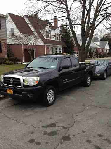 Hello for sale is a black 2006 Toyota Tacoma Access Cab Pickup with the SR5 Package. Vehicle currently has 138000 highway miles. I recently just purchased the pickup from the original owner in Massachusetts.This truck is a 4 cylinder 2WD and is great on gas (25 MPG!!!!!!!). It has the 6ft bed and SR5 Package and 20 % Tints. Also . Truck has power windows, power locks, and a remote. Truck does have a professionally installed Pioneer Double Din with up to date Navigation, Bluetooth, DVD player and a custom 800 watt subwoofer and amp ($1500 worth of audio equipment). Included is a factory tool box with lock and key from Toyota ($500) This is definitely a great small truck.