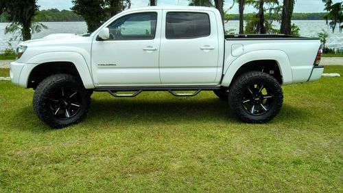 Up for your consideration is my 2011 Tacoma Sport 4x4 Double Cab. The Tacoma is very clean inside and out as the pictures show. Some of the features include a K & N Cold Air Intake, Rhino Matte Step Bars, Chrome Exhaust Tip, Back Up Camera, All Weather Lockable Mats(front and rear), Satellite Radio, NEW 35x12.50x20 Nitto Trail Grapplers, NEW 20" wheels, NEW 6" Suspension lift with full belly pan, skid plate and nitro shocks. This truck is very fun to drive and gets attention where ever it goes. The Tacoma does stay garaged and has NOT been off-roaded. I am setting the reserve at the NADA and Kelly Blue Book Value. You will not be disappointed with this Tacoma. If you have any questions about the truck, please ask before bidding. A non refundable deposit of $1,000 is due within 24 hours of auction end through paypal. I will accept the remaining balance when you arrive to pick the truck up. I will accept the deposit through paypal. The remaining balance must be paid with a certified check, no cash.