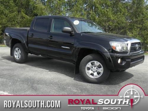 TRD OFF-ROAD PACKAGE~~~DOUBLE CAB~~~4WD~~~ROYAL CPO w/ WARRANTY! This 2011 Toyota Tacoma DoubleCab TRD OFF-ROAD has BRAND NEW TIRES and is being sold as a ROYAL CPO VEHICLE. That means it has been inspected by our factory-trained technicians, PASSED, and now comes with a WARRANTY included in this price. The warranty is valid at any new car dealership (Toyota or otherwise), as well as any ASE Certified Repair Center. That means you can buy with confidence! our dealership added FOUR NEW TIRES as a part of this inspection process. It has also been detailed and professionally clean to make it ready for sale. It has nearly $4,000 in TOYOTA FACTORY UPGRADES, including: TRD OFF-ROAD PACKAGE (TRD Off-Road Tuned Suspension w/ BILSTEIN SHOCKS, Locking Rear Diff, 16' ALLOY WHEELS, VSC + ATRAC, Remote Keyless Entry, Cruise Control, Overhead Console w/ Compass & Temp Gauge, Chrome Grille Surround & Rear Bumper, Color-Keyed Front Bumper and Overfenders, Smoked Headlamps, Sliding rear Windows, Privacy Glass, SPORT SEATS w/ LUMBAR SUPPORT, LEATHER-Wrapped Steering Wheel and Shifter, Dual Sunvisors w/ Mirrors, and BACKUP CAMERA). It also has UPGRADED SOUND SYSTEM ($310--6-Disc CD, XM Radio capability w/ Free Trial from Dealership, iPod input), and V6 TOW PACKAGE ($650--Class 4 Hitch and 7-Pin Connector w/ Converter). As mentioned, our dealership added BRAND NEW TIRES for a smooth as glass ride. If you've read up on Tacoma, or are a current owner, you'll know that these trucks are designed and proved to go 200,000 miles/300,000 miles...even 400,000 miles with regular maintenance. Tacoma was so popular, and so reliable, they put the Chevy Colorado and Ford Ranger out of business for several years. There is nothing like a Tacoma, and this is a DOUBLECAB--with room for the family or work crew. It has everything you'd need from a truck but with BETTER MPG! It is has a ROYAL CPO WARRANTY valid at any dealership...what more could you ask! Come check it out! Most of our Used Vehicles come with a 3 month / 3,000 mile warranty, FREE of charge!! All purchases give you FREE CAR WASHES every Saturday for the life of the vehicle! Thank you for considering Royal South. Disclaimer: All prices listed are believed to be accurate; we don't warrant or guarentee listed price.