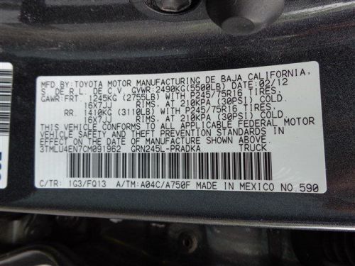 VIN (Vehicle Identification Number): 3TMLU4EN7CM091962