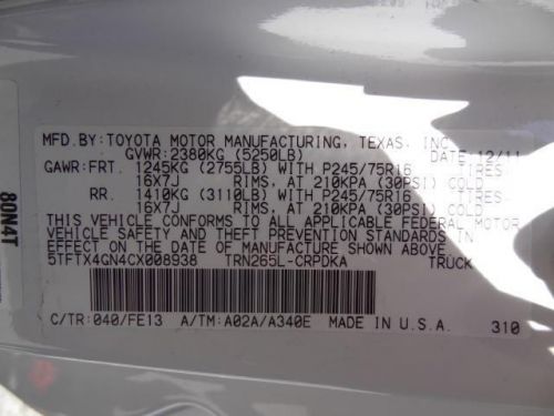VIN (Vehicle Identification Number): 5TFTX4GN4CX008938