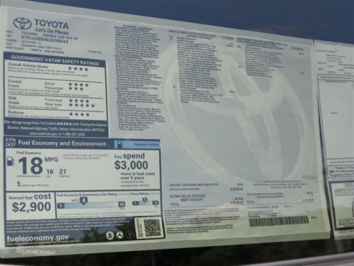 2 12V DC Power Outlets,4-Way Driver Seat -inc: Manual Recline, Fore/Aft Movement and Manual Lumbar Support,4-Way Passenger Seat -inc: Manual Recline and Fore/Aft Movement,CLOTH SEATS 60-40 Folding Split-Bench Front Facing Flip Forward Cushion/Seatback Cloth Rear Seat,Air Filtration,Analog Display,Cloth Door Trim Insert,CLOTH SEATS Cloth Front Seats w/Manual Driver Lumbar,Day-Night Rearview Mirror,Delayed Accessory Power,Driver Foot Rest,Engine Immobilizer,Entune Selective Service Internet Access,Front Bucket Seats -inc: 4-way adjustable passenger-side fold-flat seat, adjustable headrests, center console and drivers seat w/adjustable lumbar support,Front Center Armrest,Front Cigar Lighter(s),Front Cupholder,Front Map Lights,Full Carpet Floor Covering,Full Cloth Headliner,Gauges -inc: Speedometer, Odometer, Engine Coolant Temp, Tachometer and Trip Odometer,Glove Box,HVAC -inc: Underseat Ducts,Instrument Panel Covered Bin, Interior Concealed Storage, Driver / Passenger And Rear Door Bins and 2nd Row Underseat Storage,Interior Trim -inc: Metal-Look Interior Accents,Manual Adjustable Rear Head Restraints,Manual Air Conditioning,Manual Tilt/Telescoping Steering Column,Mini Overhead Console w/Storage and 2 12V DC Power Outlets,Passenger Visor Vanity Mirror,Power 1st Row Windows w/Driver 1-Touch Down,Power Door Locks,Power Rear Windows,Rear Cupholder,Regular Dome Lighting,Remote Entry w/Illuminated Entry,Urethane Gear Shift Knob,Argent Grille,Auto Off Aero-Composite Halogen Daytime Running Headlamps,Black Door Handles,Black Fender Flares,Black Front Bumper w/1 Tow Hook,Black Power Side Mirrors w/Manual Folding,Black Rear Step Bumper,Black Side Windows Trim, Black Front Windshield Trim and Black Rear Window Trim,Clearcoat Paint,Fixed Interval Wipers,Fixed Rear Window,Front Windshield -inc: Sun Visor Strip,Full-Size Spare Tire Stored Underbody w/Crankdown,Fully Galvanized Steel Panels,Integrated Storage,LED Brakelights,Light Tinted Glass,Regular Com Get a FREE Car Detail with vehicle purchase!