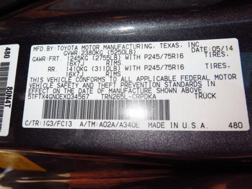 VIN (Vehicle Identification Number): 5TFTX4GN0EX034567
