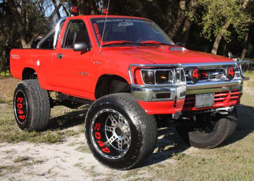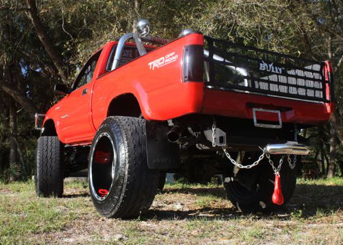 Hi everyone up for sale is a 1993 Toyota Tacoma Pick-up. This is a project I have been working on for sometime now it has been in enclosed storage for over 6 years, I am only the 3rd Owner. The first owner was the grandfather and second owner was the grandson. Since I finished It has never been seen on any street and/or registered since it was built. Well over 20k has been invested with no expenses spared. The truck has tons of brand new parts. Fresh 355 Small Block Chevy (SBC) crate motor with only 3 miles (78k miles on body, garage kept). NOS kit need carb. plate, Holley Dual feed Carb., MSD digital 6AL, MSD Street fire Distributer, MSD Wires, Chrome Block Huggers, 3 miles on Stage 3 Center force Clutch. Truck is 5 spd Manual 4x4 works great, it has power steering , 6 inch Supreme Suspension lift with 22x14 XD Diesels on 37x13.50 All Terrains, all new shocks, New Custom Interior, GPS Speedometer & Tach. that tells 0-60 times, 1/4 mile times, etc. JVC Touch screen double din. The list goes on. The truck is 95% complete needs larger radiator installed, I have the radiator & extra fans. The only reason for selling the truck is because we are getting married and wife says some toys must go! Thanks everyone Happy Bidding On Apr-13-14 at 11:59:28 PDT, seller added the following information: I ALSO MADE A VIDEO OF A WALK AROUND START UP AND DRIVE SO YOU CAN HEAR IT & SEE IT. https://www.youtube.com/watch?v=V8_6q3fo2MA Hi everyone up for sale is a 1993 Toyota Tacoma Pick-up. This is a project I have been working on for sometime now it has been in enclosed storage for over 6 years, I am only the 3rd Owner. The first owner was the grandfather and second owner was the grandson. Since I finished It has never been seen on any street and/or registered since it was built. Well over 20k has been invested with no expenses spared. The truck has tons of brand new parts. Fresh 355 Small Block Chevy (SBC) crate motor with only 3 miles (78k miles on body, garage kept). NOS kit need carb. plate, Holley Dual feed Carb., MSD digital 6AL, MSD Street fire Distributer, MSD Wires, Chrome Block Huggers, 3 miles on Stage 3 Center force Clutch. Truck is 5 spd Manual 4x4 works great, it has power steering , 6 inch Supreme Suspension lift with 22x14 XD Diesels on 37x13.50 All Terrains, all new shocks, New Custom Interior, GPS Speedometer & Tach. that tells 0-60 times, 1/4 mile times, etc. JVC Touch screen double din. The list goes on. The truck is 95% complete needs larger radiator installed, I have the radiator & extra fans. The only reason for selling the truck is because we are getting married and wife says some toys must go! Thanks everyone Happy Bidding I ALSO MADE A VIDEO OF A WALK AROUND START UP AND DRIVE SO YOU CAN HEAR IT & SEE IT. https://www.youtube.com/watch?v=V8_6q3fo2MA |