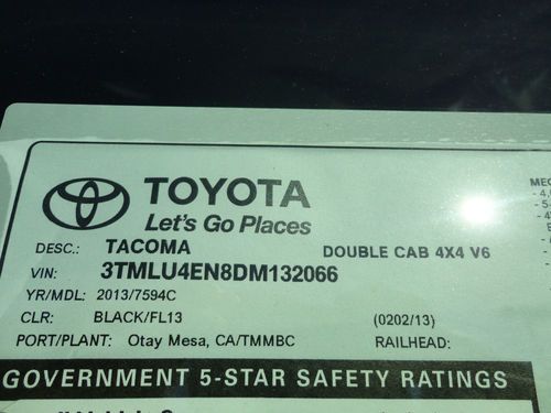 New 2013 Tacoma Double Cab V6 4x4 Trd Sport Black Paint Hood Scoop Automatic 4wd on 2040-cars