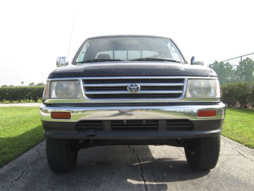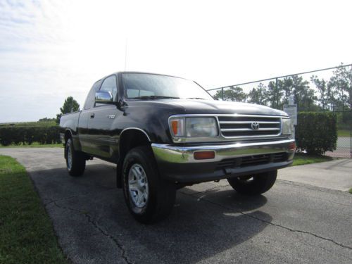 FOR SALE 1997 TOYOTA T100 ,TRUCK HAVE THE 3.4 V6 ENGINE WITH THE 5 SPEED 4WD MANUAL TRANSMISSION THIS IS A ONE OWNER TRUCK..ALL ORIGINAL ,PAINT HAVE SOME DINGS AND DENTS BUT OVERALL IS EXCELLENT...RECENT FULL TUNE UP INCLUDE NEW IGNIGTION COILS AND WIRES ,NEW SPARKS PLUGS,FRESH OIL CHANGE AND NEW OIL,AIR AND FUEL FILTERS...THIS IS A SR5 MODEL ,HAVE POWER WINDOWS,POWER LOCKS ;POWER MIRRORS AND CRUISE CONTROL ALL WORKING GOOD...4WD IS GOOD AND AC IS COLD...TRUCK HAVE ALL 4 RANCHO ADJUSTABLE SHOCKS...NO RUST ,CLEAN TRUCK...BIDDERS WITH LESS THAN 10 POSITIVE FEEDBACK CONTACT ME BEFORE BID OR BID CAN BE CANCEL,TRUCK IS FOR SALE WITH ABSOLUTE NO WARRANTY,BUYER TOTALLY RESPONSIBLE FOR PICKUP OR SHIP THE TRUCK..1000 DOLLARS AT AUCTION CLOSE REST IN CASH UNLESS PRIOR DEAL HAVE BEEN MADE...UNDER IS A AUTOCHECK REPORT.............................. AutoCheck Vehicle History Report1997 Toyota T100 SR5 Report Run Date: 2014-06-08 11:01:43.916 EDT Report Summary