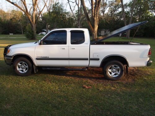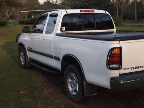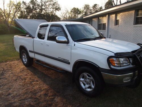 2001 Toyota Tundra in very good condition. 190000 miles and everything works perfectly. Fairly new tires with about 85% tread left. Grille guard tail light guards and bed cover. I drive this truck everyday and i've never had any problems, very strong running motor. The oil gets changed every 3000 miles and the brakes are good. The interior is gray cloth and is also in good condition. Air conditioning and heat work very well also. I cant think of one thing that does not work as its supposed to and there is no check engine light on.