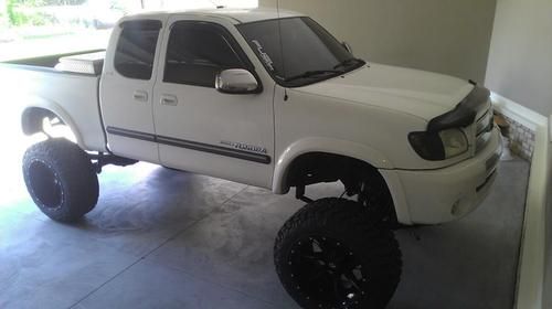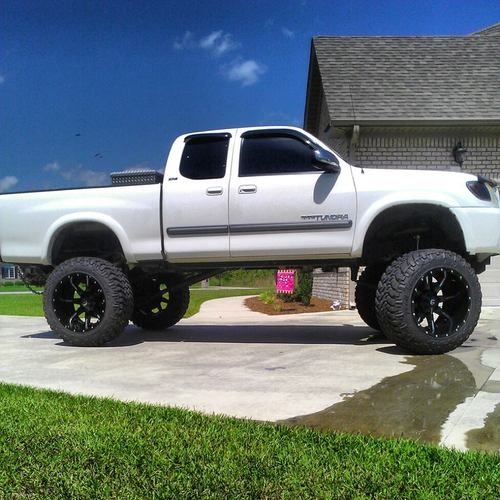 2003 Toyota Tundra 15" solid axle swap lift with Dana 44 front axle Dana 60 rear axle 22x14 fuel nutz and 37x13.50 nitto trail grapplers 5% tint all the way around and 5% tint strip true dual exhaust with 5" tips smoked tail lights and corner lights 8k H.I.Ds 266k miles very well kept mostly highway miles serviced every 3k miles and new spark plugs every 100k miles never had any problems with the motor or trans only issue ever was a dead battery it is a road princess never been in the mud very sharp truck a true head turner people always come up and was to talk about it selling so I can start a new project 15,000 obo begin_of_the_skype_highligend_of_the_skype_highlig Thanks Brett