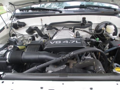 Natural White Exterior-- Grey Leather Interior-- 104,xxx Miles-- 4.7 Liter V-8-- Automatic Transmission-- Power Windows, Door Locks, Mirrors, Drivers Seat-- Air Conditioning-- Power Steering-- Premium Sound System AM/FM, 6 CD Changer, 6 Speakers-- Power Rear Sliding Window-- Fog Lamps-- Daytime Running Lights-- TRD Sport Package-- Tow Package With 130 Amp Alternator, Transmission Cooler, Tow Receiver Hitch, 7 Pin Connector, B&W Turnover Hitch-- Bedliner-- Truck Is In Very Nice Condition, I'm The Original Owner |