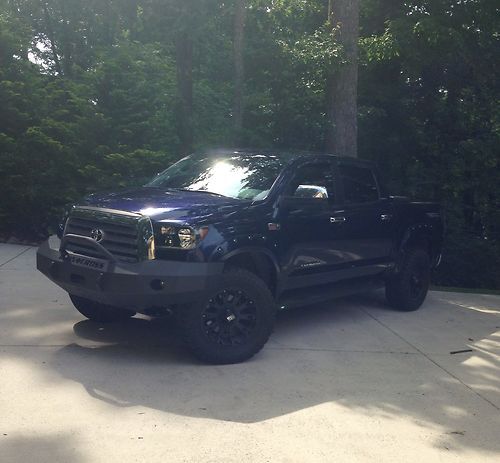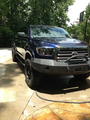 This is a beautiful 2007 Toyota Tundra Crewmax Limited TRD Offroad 4x4! It catches eyes any and everywhere you go! It drives and looks like a dream! It is in great shape, it does have some damage done to the rear fender (as pictured) from jackknifing a trailer. Other than that there are no major cosmetic flaws, only a few small scratches as any used pick-up truck will have. I am not going to do like most car company's do and detail it, and use cheap touch-up paint and try to cover up anything! What you see is what you get, a VERY nice truck. It has the 5.7 iForce engine with 88,500 miles. It is FULLY loaded! Leather seats, Sunroof, Heated seats, Dual Power Seats, built in factory navigation system, back-up camera, JBL 12 speaker sound system, 6 disc CD changer, AUX output, and soo much more its impossible to list it all!! The only thing this truck doesn't have that was available from factory is parking sensors! And that's just the Factory stuff! I have personally added a 3 inch Daystar leveling kit in the front with a 1 inch block in the rear, 20in XD Misfits, 35x12.50x20 Mickey Thompson Baja ATZ with half the tread, an Iron Cross front bumper with Pre-runner bar, PIAA LED fog lights, K&N Cold air intake, Spec-D black LED taillights, IPCW Bermuda led 3rd brake light, Depo black headlights, HID headlights, vent visors, Color Matched Bushwacker pocket style fender flares, and a Kobalt black toolbox (available for $100 extra) I'm positive there is more that I am leaving out but you just have to see it to believe it! It has 88,500 miles but it is my every day vehicle so the actual mileage will vary some. I took the truck to a body shop to get an estimate on how much it would cost to have the fender repaired but I knew I was planning on selling it and the truck hadnt had any previous work done and some people like to have there own work done there shop so I just decided to Leave it and take it off the value. The estimate was for $800 so I will take that off. If you have ANY questions please ask!! I am positive I left some stuff off so if you have anything you need to know ask! This truck is CLEAN! You have the right to test drive it and check it out before paying for it! I require a $500 down payment but if you find any issues and decide it isn't what you want, I can refund your deposit through PayPal. THIS TRUCK IS ALSO FORSALE LOCALLY AND I RESERVE THE RIGHT TO END IT EARLY DUE TO LOCAL SALE! Do not let this truck go!!