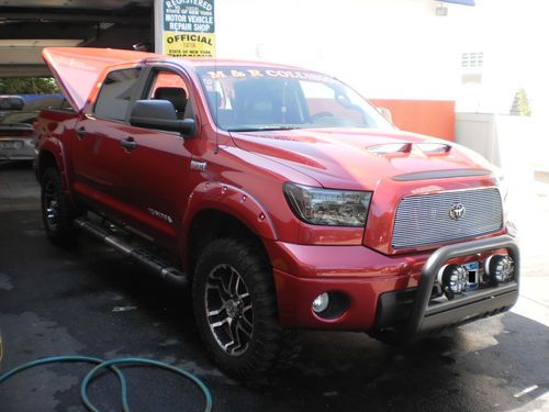 FOR SALE IS A 2007 TOYOTA TUNDRA. THIS TRUCK IS CLEAN! ABSOLUTELY NO PRIOR ACCIDENT OR DAMAGE. IVE HAD THIS TRUCK FOR TWO YEARS. BEEN TO MANY SHOWS IN THE BELMONT AREA. THIS TRUCK IS LIKE NEW. RUNS AND DRIVES GREAT. ONLY MAJOR WORK DONE ON THE CAR WAS A REPLACEMENT RADIATOR. THE OFF ROAD TIRES WILL TACKLE ANY TERRAIN YOU THROW AT IT. THE INTERIOR SEATS ARE DOUBLE STITCHED LEATHER WITH A CUSTOM PIONEER SOUND SYSTEM THAT WILL BLOW YOU AWAY.