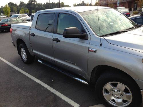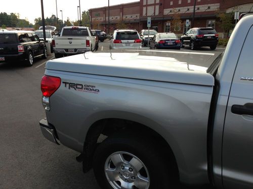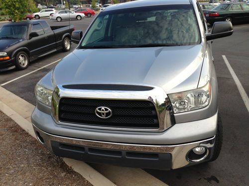 2007 Toyota Tundra SR5 - TRD Crew Max with matching ARE Silver Tonneau locking cover. Vehicle never used for work, purely highway miles for traveling salesman. Truck has sunroof and rear window that completely lowers creating a big convertible truck! Awesome vehicle with 389 HP 5.7 i-Force motor, just getting broke in. Drives just like a new truck. Has one brand new tire and the other three are less than a year old. Bright Silver outside with grey cloth interior (in great shape). Ready to sell below book value. Daughter going to college and need the monies!
