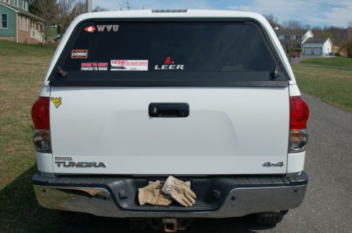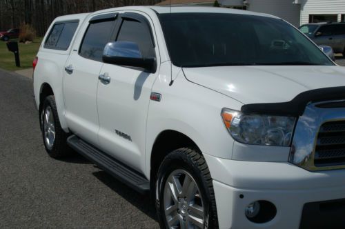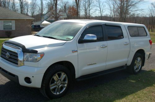 I can't say enough about my truck. I am the original owner of this beautiful 2008 Toyota Tundra Crewmax Limited. To say this truck has been babied is an understatement. It has had the best treatment, with oil changes religously at every 5000 miles, waxed at least two times a year, seat covers on the leather seats from the beginning, transmission oil flushed, new brakes and rotors, and I just recently put new tires on it (less than 600 miles). The tires are one size larger than the stock size and on 20" OEM wheels...it is a real head turner. I have a Leer toper on it, painted to match. This truck has spent only a few nights outside of the garage. When it gets driven, it is washed and stored back in the garage immediately upon returning home. I know this sounds a little hard to believe but it is true. I have babied this truck from day one! It is totally loaded. To the best of my knowledge, it has every option made by Toyota at the time of my purchase.