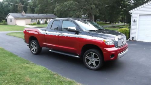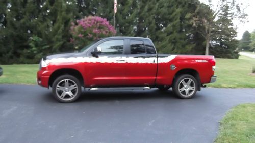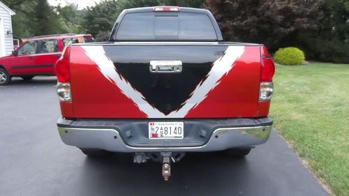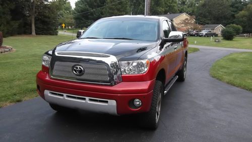 2008 Toyota Tundra Crew Max Limited TRD Off Road 4x4- Navigation 2008 Toyota Tundra Crew Max Limited TRD Off Road 4x4 that is Custom painted Black / Silver / Orange in color with gray leather interior. This Tundra is accident free and shows normal minimal wear and tear but it is very clean. It comes equipped with power windows, power locks, tilt, cruise, dual power heated seats, rear sliding back glass, and JBL Audio System. The leather interior is in great shape and all power components work including the four wheel drive. It rides and drives great and it turns heads everywhere it goes. Please email or call 443-214-8707 and I will be happy to answer any of your questions