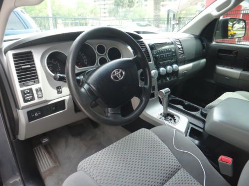 2008 Toyota Tundra SR5 V8, interior is in good condition, perfect running condition, michelin tires wit 90% tread left, new front brakes and rotors about 500 miles on them, all maintenance completed by Toyota dealership , this is a short bed,5 disc in dash factory cd player, power seats, rear sliding window, includes plastic bed liner, aluminum tool box, title is in hand, tow package, body has some small dings and scratches, front has minor dent to bumper due to someone hitting it while parked, this vehicle was purchased new by me and has never been in an accident.