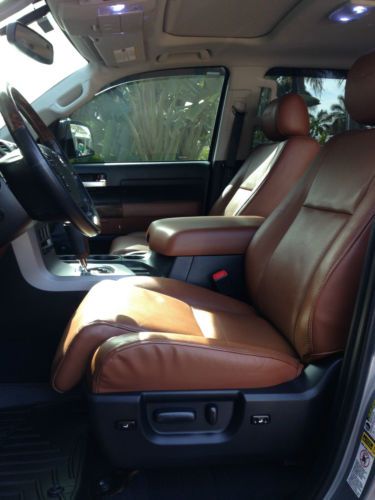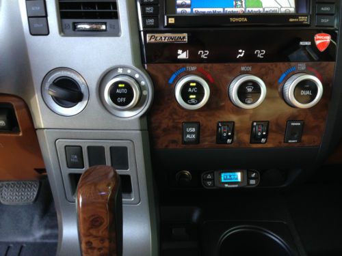 Immaculate condition! Adult owned, Non smoker, No Pets, TONS OF EXTRAS and LOW MILEAGE!!! Truck has the following factory installed equipment: *Platinum package with premium Red Rock Leather interior, Folding and reclining rear seat, Premium JBL Satellite/Radio/CD Stereo system with 8 speakers and sub woofer, power package which includes heated and cooled seating, memory seating, power with lumbar support seating, power heated mirrors, power folding mirrors, wood grain accents, power sunroof/moonroof, power heated rear window, Dual climate control heat/air conditioning, chrome grill and exterior accents, DVD Navigation with back up camera, parking assist with front and rear sonar system that displays and beeps when close to any object while parking, carpet floor mats. AUX and USB connections, Bluetooth multiple phones, Stereo and phone controls on steering wheel, power adjusting leveling headlights, Fully Loaded!!! *Towing package *Toyota Paint protection *Toyota Interior Leather Protection
