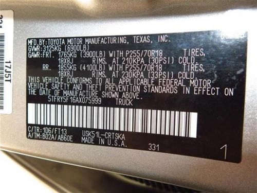 VIN (Vehicle Identification Number): 5TFRY5F16AX075999