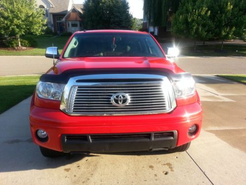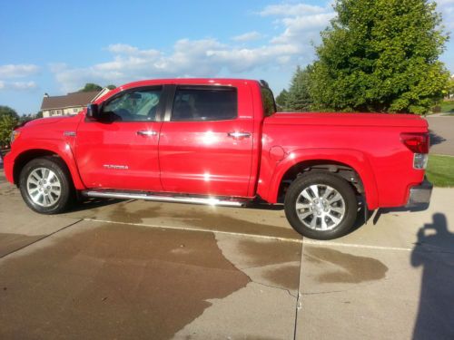 2010 Toyota Tundra Limited CREWMAX 4x4 with every possible option, and then some more add-on extras !!! Original sticker was about $50,000 then add-on extras of about $6,500.... Brilliant shiny bright RED exterior and gray leather interior , Only about 61K mostly highway miles. Also includes an Toyota Original Manufacturer Extended Bumper to Bumper Warranty until March 15 of 2015 or 100,000 miles !!! Worry-free driving... ALWAYS factory maintained with records !!! (Toyota Extended Warranty cost alone was about $2,400 - that I am INCLUDING with purchase) Some of the options: Navigation with voice command & blue-tooth, Back-up camera, front & rear parking sensors, Factory rear DVD entertainment system with wireless headphones, ALL leather heated seats, Remote start, Custom matching color locking bed cover, Step rails, Custom toolbox in bed, bed liner, and MUCH MUCH MORE !!! (Check out the pictures and also the original sticker for FULL list of everything) NEW Tires & Brakes at about 50K miles ... NEVER taken off-road, adult driven, NO pets, NON-smoker !!! Must see in person to appreciate and truly see how GREAT this truck is !!! ~~~~~~~~~~~~~~~~~~~~~~~~~~~~~~~~~~~~~~~~~~~~ I really do NOT want to sell, but forced to due to new job that came with company vehicle. I do NOT need 2 trucks !!! The price I am listing it at really is a GREAT DEAL, with ALLLLLLLLL that is included !!! (shop & compare, then make your best offer) Contact me via Ebay Contact the seller link to come see in person or make arrangements to meet !!! (or to MAKE ME AN OFFER and end auction early) Title in hand and ready to sell NOW !!! ~~~~~~~~~~~~~~~~~~~~~~~~~~~~~~~~~~~~~~~~~~~ I am located in Southeast Michigan, about an hour from Detroit. If shipping, I will assist as much as I can with the arrangements, but buyer is responsible for all costs. Truck is also for sale locally, so get it before it's gone (I reserve the right to end auction early since it is also for sale locally) |