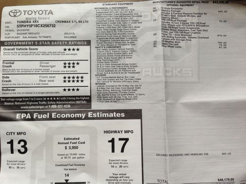 Please see sticker for all features, plus bed liner, tonneau cover and running boards (all dealer installed). Selling because of job change that requires more driving. LOVE this truck and it is 100% perfect - exactly like I purchased it in Jan 2013. SAVE over $8,000 (including installed extras). See my ebay rating - perfect for over 14 years!