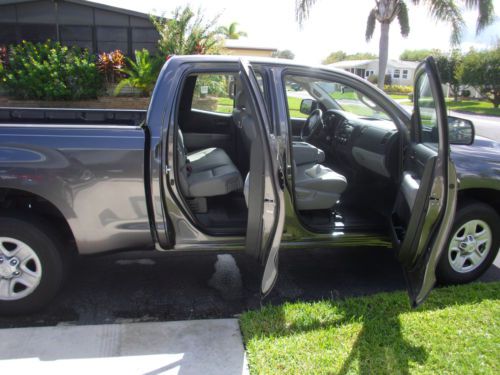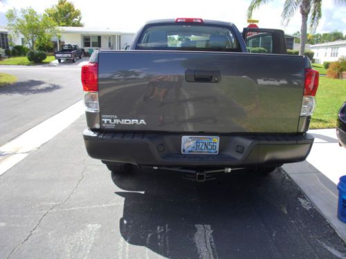 Very nice Tundra Double Cab 2WD with 12500 miles. Original owner, never wrecked or abused. Exterior sheet metal and interior very nice with one small mar in front bumper ( see Photo). Bed has scratches, since it was actually used to haul stuff. Some spray on bed liner and it would look like new again. More bins and compartments than an Egyptian tomb, two glove boxes, and room for more cups than passengers! Rear seats fold flat against rear cab wall for more hauling room. Seats are practical vinyl, and floor is rubber covered so truck can be used like a truck, but still be comfortable. 270 hp V6 does not lack for power and will pull most normal sized loads. Five speed automatic transmission. Class III frame hitch also includes hitch extension with three different sized trailer balls. Vehicle is also wired for typical 4 plug trailer harness. Dual control A/C and heat, cruise, power windows, locks, steering and ABS brakes. AM-FM Stereo with single CD player and MP3 plug for your iPod. Always serviced at Toyota and records are available. Rated at an accurate 16/20 mpg. Large 26 gallon tank gives this vehicle an impressive cruising range. No mechanical issues. Still lots of factory warranty (3 year/36000 miles) remaining. I'm in the Tampa Bay area of Florida. Fly in and drive it home, no matter where home is. Pick up from either Tampa or Sarasota airport can be provided if needed. If you want to ship it, all shipping costs are at the expense of the buyer, but I will be happy to work with any trucking company on my end.