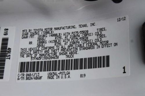 VIN (Vehicle Identification Number): 5TFHW5F19DX284658
