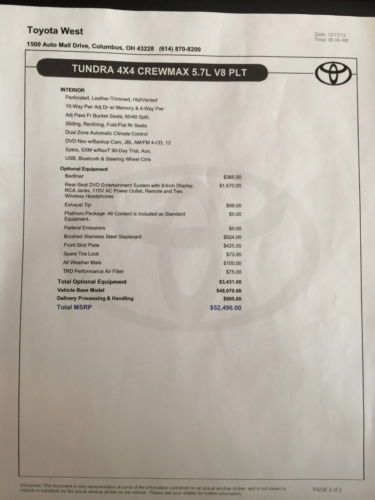 Toyota tundra 4x4 crewmax limited trd navigation rear entertainment(US $30,995.00)