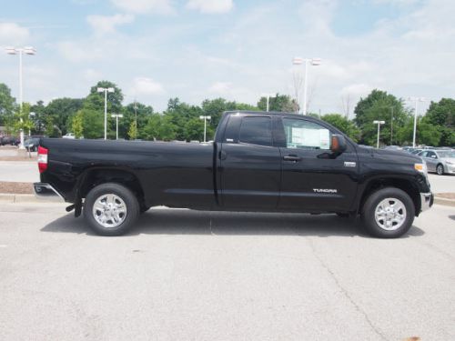 Tundra SR5 4 Door Double Cab in Black. Includes SR5 Package (Illuminated Entry System and Sliding Rear Window w/Privacy Glass), Entune Audio Plus (SIRIUSXM Satellite Radio), 4WD, 3-Passenger Front Bench Seat, Split folding rear seat, Rear step bumper, Remote keyless entry, and Traction control. At Andy Mohr Toyota, please review our extensive inventory of Toyota Cars, Trucks, and SUV's. That new Toyota is waiting for you, and we work with a vast array of lending sources to make sure you will get the most complete and comprehensive financial package available. All new vehicle pricing includes applicable rebate, plus destination. Call Today Toll Free 1- 888-306-2871.