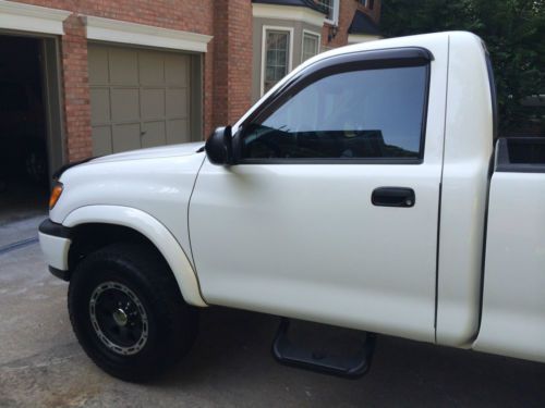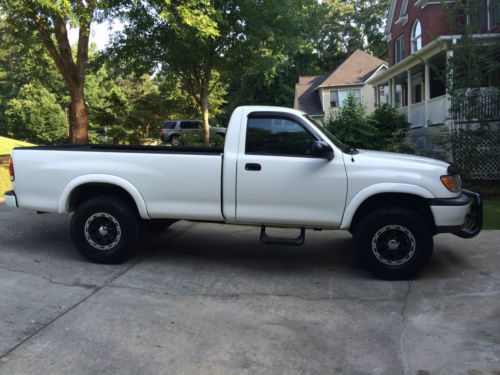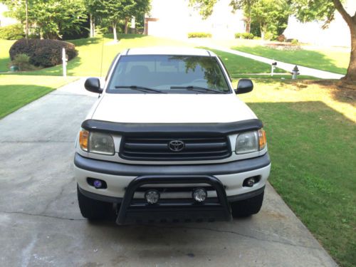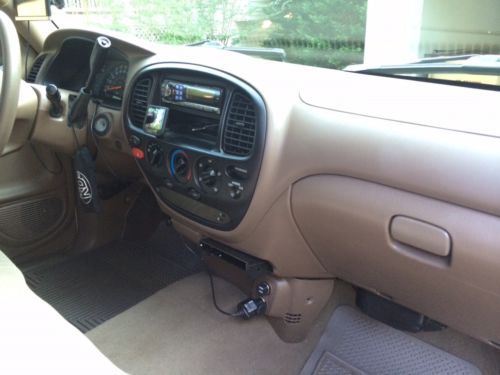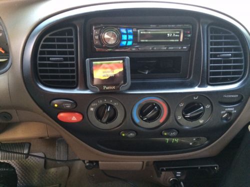 Time to sell my Tundra. Before you read further know that this is my daily driver in Atlanta traffic so don't mistake this for a lifted truck that is not drivable. Just got 23mpg on a 600+ mile trip. Truck is for sale locally so get it quick. I'm not the negotiating type, but I will tell you no unlike some of the unfriendly folks on eBay. Mechanically a 9/10 and paint is 8/10. I bought the truck lifted from the local Toyota dealer (Marietta Toyota) who has sold the truck 3 times. They sold it new, then took it in on trade two more times. Yes, glad to verify it. I do not know what kit was used and would guess that its a 4" lift on 31" Toyo TerraGrapplers (40% treadlife approx.). The deck at my office is 7' and the antenna pings occasionally but I park without issue. It also has aftermarket exhaust that rumbles. Almost sounds like glass packs. No idea of brand but sounds great for a V6. Eight foot bed. The facts are it has Mobil One every 5k with Mobil One filter. OEM air filter and plugs 6 months old. Under the hood and the undercarriage of this truck are almost new looking. Timing belt done at 80-90k and yes I can show you. New alternator and belts. This truck has load leveler airbags under the bed with air inlets by the tag so that if you put a heavy load in the bed you put air in to adjust the ride. Has towing pkg and have never pulled more than a trailer with one of my bikes on it to and from shop. I put an Alpine head unit in and added a Parrot Mki9200 ($1k for both). This allows you to talk on your phone through car stereo and microphone and to also stream music via Bluetooth or hardwire. You can simply put your music on a thumb drive and plug it in if you like. Sounds great. Windows are tinted and bedliner is freaking industrial. Sylvania $100 headlights with KC's and yellow LED's wired to low beam so all on at low beam and off at high. Switches on dash to adjust accordingly. this is the list of what is "wrong" and is exhaustive. I have excellent feedback for a reason. Nothing to hide. A couple of paint chips here and there...maybe four. Non bigger than 3mm. Crack in right tail light assy. Doesn't leak and cannot see. Bottom of door jams are scratched on both sides from getting in and out. Seat on driver's side has started to crumble...this is on the side and not on the seating surface...it's from sliding out of the truck and there is no stuffing or whatever showing. I am putting a new windshield in it this week as the GPS unit somehow caused a crack. I walked out one Monday after a very hot sunday of not doing anything and it was there right where the GPS is attached. Regardless, new windshield. Small dent in driver rear bed see pic no paint scratched. Never tried to pull it...was there when I bought truck. That's it. Swear it. I LOVE this truck. Too many toys. 3 bikes a car and a truck. Living the life, but gonna swap this one for something else. No one can tell this is a two wheel drive V6 and you will surely get 300k if you treat it right. |