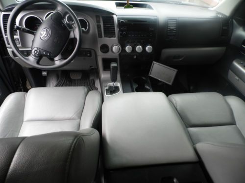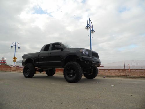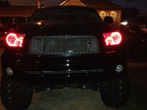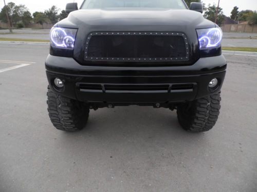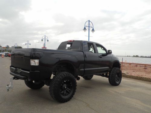 Up for auction is a heavily modified 2010 Toyota Tundra. I am the only owner this truck has ever had. I am single and the passenger and rear seats have rarely been used, as can be seen in the pics provided. The rear seats have been folded and kept out of sunlight the majority of time. The leather on the driver seat is nearly perfect as well and does not have any tears or sign of wear. There are no scuffs, scratches, or stains anywhere throughout the interior. I am a part-time detailer and the exterior has been clay barred 3 times and waxed 4 times in the trucks short lifespan. The paint is smooth as glass with a mirror finish. There are the typical light scratches that can be seen up close associated with any vehicle that's been driven, but no dents, deep scratches, or body damage whatsoever. The truck is my secondary vehicle and I've gone to great lengths to keep it immaculate. It has never been in an accident, nor has it been serviced for any problems other than an O2 sensor that was replaced. The tires have roughly 75% tread left and I just had the truck aligned this past week.