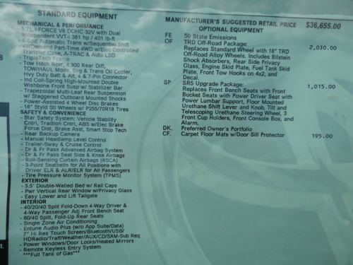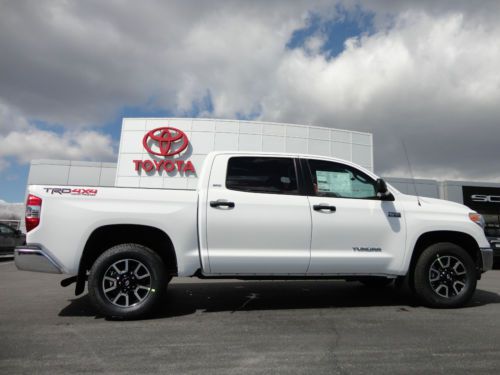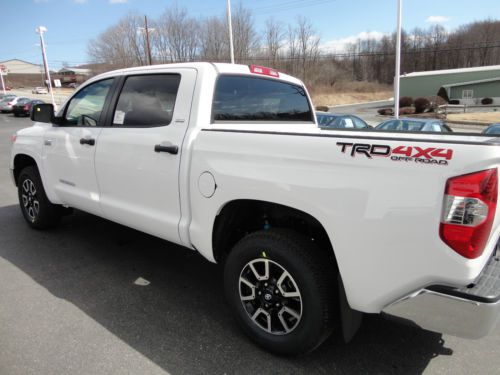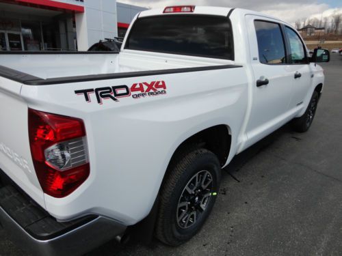 THANK YOU FOR VIEWING OUR BRAND NEW, JUST ARRIVED, ALL NEW DESIGN, 2014 TOYOTA TUNDRA CREWMAX 5.7L V8 TRD OFF-ROAD EDITION 4X4 WITH REAR CAMERA, TOW PACKAGE, BLUETOOTH, TOUCH SCREEN, ETC IN SUPER WHITE CLEARCOAT PAINT WITH GRAPHITE FABRIC INTERIOR WITH 8 ACTUAL MILES! WE ARE A TOYOTA DEALERSHIP IN WESTERN PENNSYLVANIA AND THIS NEW 2014 TUNDRA CREWMAX TRD 4X4 HAS A MSRP OF $40,890. WE ARE OFFERING THIS NEW 2014 TUNDRA CREWMAX TRD 4X4 AT A SPECIAL, DISCOUNTED 'BUY IT NOW' PRICE ON EBAY FOR A VERY LIMITED TIME AND INCLUDES THE TOYOTA REBATE. WE ARE ALSO OFFERING A LOW 2.99% APR UP TO 60 MONTHS WITH APPROVED CREDIT! PLEASE VIEW THE COMPLETE LISTING INCLUDING 24 PHOTOS ALONG WITH PHOTOS OF THE ACTUAL WINDOW STICKER. PLEASE CONTACT SCOTT LONG @ (866)467-8395 OR (814)659-1908 OR EMAIL TO LAUFORD@AOL.COM WITH ANY QUESTIONS. THANK YOU FOR VIEWING AND BE SURE TO VIEW ALL OF OUR EBAY LISTINGS AS WE CURRENTLY HAVE (14) NEW 2014 TUNDRA'S IN STOCK AT SIMILAR SAVINGS! ALSO CHECK OUT OUR 100% POSITIVE FEEDBACK!
