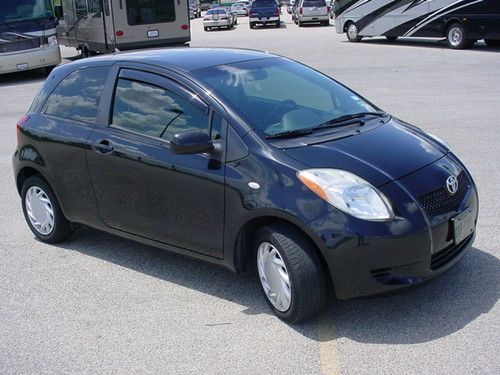 Very Clean metallic black 2007 Toyota Yaris 2-door hatchback, with cold a/c, power windows, power door locks, power mirrors, am/fm stereo with CD player, tinted windows, rear window wiper/Defroster, Cargo Cover, Floor mats, automatic transmission, Never been wrecked or painted on. Clean in and out. Good brakes and fresh oil change. Tires in good condition, This one has 93540 miles, and is in really excellent condition. Gas sipper, 40 miles per gallon!