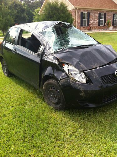 2008 Toyota Yaris 2 door hatchback for sale for parts. Needs body. I dozed off and rolled the car. Everything works. Lights, radio all other electronics are fine. Air bags did not deploy. I knocked out the rest of the windshield and drove the car down the road. The only leak I can find is the windshield wiper washer fluid container. One of the rims was bent so I have the donut spare on the car. I have a clear title.