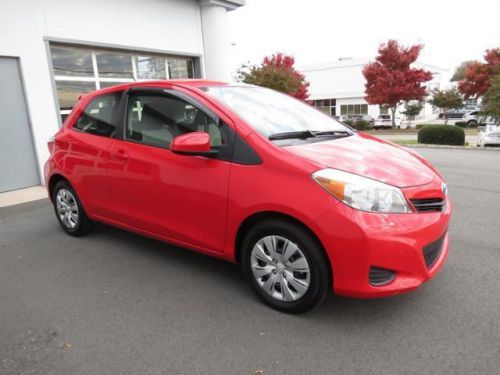 CLEAN CARFAX, 1 OWNER, REMAINING FACTORY WARRANTY, RECENTLY SERVICED, LOW MILEAGE, MANUAL TRANSMISSION This manual transmission red 2012 Toyota Yaris L has a low mileage of less than 10K miles and achieves average gas mileages of 30/38 MPG! Standard features on the Yaris L include A/C, AM/FM/CD/MP3 connectivity, tilt wheel, rear defrost and cloth bucket seating! This vehicle features a clean, one owner Carfax history! Call Fiat of the Triad, located in Greensboro, NC, today to schedule a test drive! * The advertised price does not include sales tax, vehicle registration fees, other fees required by law, finance charges and any documentation charges. * Images, pricing and options shown are examples, only, and may not reflect exact vehicle color, trim, options, pricing or other specifications.