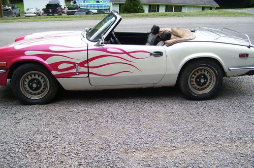 A great place to start!! Here is a 1977 Triumph Spitfire 1500 4-speed... the car does run good and drive... does need some restoration. The frame is great shape there are a couple places that are bubbling through the paint on the hood under the lip of the front (repairable) and the bottom of the front fender has a bubble on the bottom also repairable. I have looked up parts prices and they are very reasonable. It won't take much to restore this classic car. I bought the car to do it myself cause I restore cars for a hobby but I am in the middle of a '79 Camaro restoration and have a '74 corvette to play with so I don't have time right now to do it. It is a convertible which it will need a new top (still not very much) if you have any questions or need pic on a specific part of the car let me know and I will get them to you asap... like I said its a great place to start with this car. Thanks and happy bidding.. and the drive is original to the car...