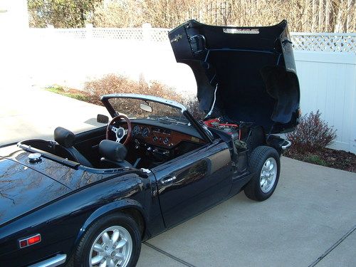 The vehicle for sale is a 1977 Triumph Spitfire 1500 that has undergone a full restoration. The vehicle has no rust -- not even those floor boards. Paint was stripped and the car primed and professionally painted in deep blue. The odometer shows 49,500 miles believed to be accurate. The car has won three trophies including "best in class" at the St. Louis British Car Show.