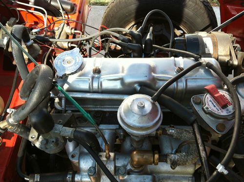 Up for auctioning a 1979 Triumph Spitfire 1500. It has 67,xxx miles. no accident, The car is in running condition, engine sounds healthy and he overdrive transmission is shifting smooth through gears. It has a new Distributor, new Spark plugs, recently oil changed, good engine compression on all four cylinders. Body has minor dents here and there, paint has some cracks/ chips here and there, could used a new paint job. It has a new dash cap, nice wooden dash, new inside upper door capes, new outer & inner window seals, doors seal. Cleaned and painted gas tank, new muffler, good brakes, good clutch, good tires, ok convertible top.