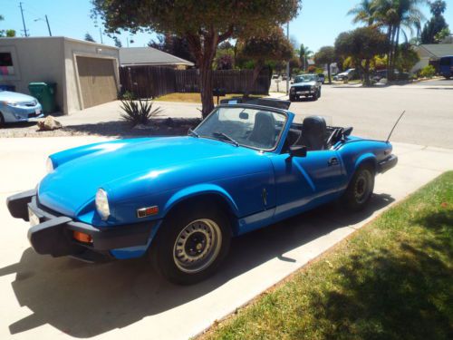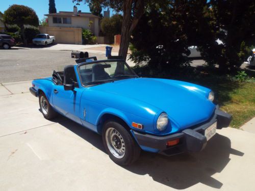 Here is your chance to own one of the most popular British Sports Car Extremely rare to find a 35 year old car in this good condition 1979 Triumph Spitfire 2 door Convertible Rear wheel drive 1.5 liter 4 cylinder 4 speed manual transmission 125,000 miles Hands free Bluetooth Alpine AM/FM/CD XM Satellite receiver 6x9 Pioneer boxed speakers Maintained and well cared for since purchased 2013 Body in great shape Non Smoker All factory and stock with no modifications New top and interior New dash cover Manual windows, door locks and mirrors Factory Triumph wheels All tires in good condition I may end auction at any time since it is for sale locally Has salvage title since bonnet has been replaced before I purchased Good luck you will be pleased with the purchase Please call Chuck at 805-448-3161 if you need further information |