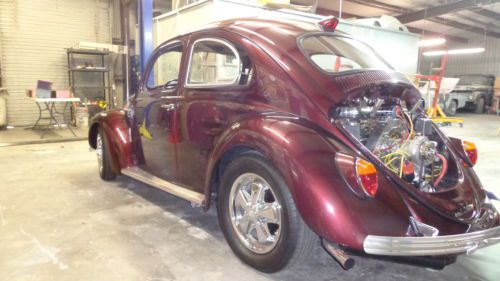 Up for sale is one beautifull 1963 vw bug custom, paint,interior,wheels,and lots more! This bug is ready for the cruz and car show, it draws a crowd,This bug looks and sounds awsome! don't let this one get away. This baby is done and done nice pictures say it all and if you need more pics just ask! I will send you what ever pics you need or ? you mite have about this baby, over 400 hours in labor. THANK YOU FOR LOOKING AND HAVE FUN BIDDING Here is a list of NEW parts NEW interior burgundy with tan astringe inserts on seats and door panels.seal & clips new headliner and padding and carpet billet door handles and window cranks kenwood head unit that lights up in red kicker 3 way 5" and sony 3 way 6x9 windows and door seals custom wood grain paint on dash glove box one piece windows and battery roller gas peddle. Under dash weve tray for cell phone sun glasses what ever you want, empi shifter NEW exterior custom paint burgundy with gold & copper peal and lite orange flake base coat clear coat and buffet to a show room shine door handles front uro head lights amber parking and signal in the light buckets tail lights and a custom 3rd light on roof as in pics billet front and back bumpers and brackets billet running boards and nutech sill plates all exterior rubber and seals trunk,decklid,fenders,trunk handle,decklid handle,bumper bracket seals,pop out window seals 2"1/2 drop spindles coil over shocks front are new rear came on car so used, rims and tires front are 135x15 back 215x60/R125 disc brakes and lines, feul pump oil filter cooler and oil sump tranny mont and axle boots, sway bar bushings, starter, lighten flywheel 200 mm all chrome tin and blue light behind fire wall stainless so when your running lights are on motor lights up in blue as shown in pics wiper arms and blades and lots more all invoices on hand 15,000 just on body and paint plus all new parts. low reserve FOR MORE INFO PLEASE CONTAT ME @ 352-835-8593 OR IZZYSCUSTOMS@YAHOO.COM THANK YOU HAPPY BIDDING
