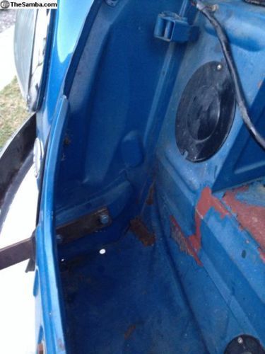 Electrical has been updated to 12v: Semaphores work great, head lights, brights, tail lights, brake lights, all work. Interior was redone in an original blue color scheme with a white piping. The seats are in great condition as are the door panels and floor mats. The headliner has a few rips but still looks decent. Paint is an older paint job showing its age with scratches blemishes and some small dents and dings.. This is a very true car showing no signs of body work or excessive use of bondo.