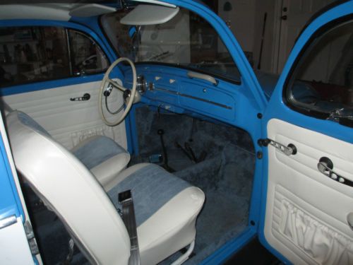 Hello folks here we have a 1963 fully restored original pan and body rag top . The bug has a 1971 freeway flyer trans axle. 1970 1600 cc. 60 horsepower hp engine. The motor has had a full rebuild bearings, rods. values. pistons. etc.. All new. I have the shop invoice, this is a pan off restoration. It is all new rubber. seals. grommet's. hoses. lines. pads. insulation..upholstery. steering wheel, turn signal switch. etc. This is all brand new bug. Have the title in my name radial tires on 5 lug aluminum wheels. This bug is privately for sale and can with drawn at anytime. Please contact me with any questions. Delivery arrangements may be worked out with myself as do travel quit a bit across the country.