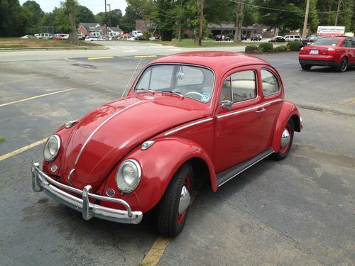 This is truly an amazing find. This is one of our customers cars. 1963 VW Beetle and he and his wife are the original owners. We have the original paper work including bill of sale and window sticker and all service records. The only thing not original looking on the car is the black wall tires. This car was purchased in California and then they moved to North Carolina in the seventies. It has always been garaged from day 1. There is not a single spec of rust anywhere. The owner had the car freshened up in the eighties to include seals, paint, gaskets, engine tune, etc. The only thing not working on the car is the original radio and the fuel level gauge. This thing is amazing! We would like only serious buyers on this car contacting us for more information. I can put you in touch with the original owner if you call me at the shop. Ask for Carmine at 336.993.5506. One of the pictures listed is the car when it was brand new in 1963. One of the girls in the picture is the daughter of the owner who brings her MINI Cooper to our shop for service! The documentation on this car is insane. If you are looking for an original owner hard to find bug this is it! Give us a call if interested. We can also assist with shipping the vehicle if needed. The owner is moving out of state August 30th so he will not have a garage for the car. We could keep it in the shop for a short period once the car is paid for if needed but would rather have the car picked up shortly after it is paid for. This car DOES NOT HAVE the typical aftermarket CRAP! that most bug owners install and make it look terrible as do most of the bugs listed on eBay right now. IT IS ORIGINAL and for sale by the original owner. The title is clear and in the owners name and hand.