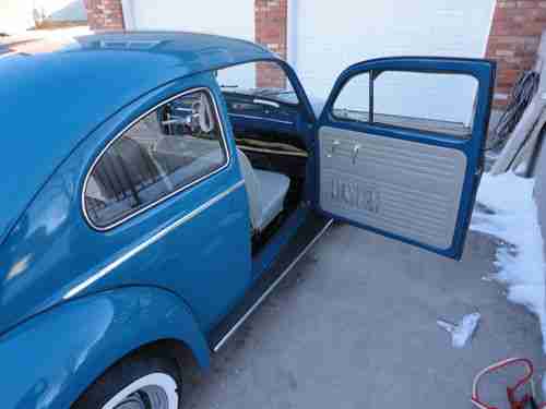 Beautiful 1964 VW Bug. I bought this from a friend who had this since the late 1990s. Her husband surprised her with it for her birthday with a big bow. He bought it from the original or second owner (not sure) who also bought it for his wife and had it painted in approx 1996 in its original color VW Seeblau. I have a touch up applicator with the paint code. The guy who does my painting was able to find it in his computer and was surprised. I was going to have him paint the two areas on the drivers side fenders and touch up passenger door, hood and anywhere it was needed ( see pictures ) . There is no bondo on these areas but thick single stage paint. The dent in the rear is from a tree limb and the previous owner did not know how the front fender was damaged. I will let the new owner have these areas painted and will provide the applicator with the code.