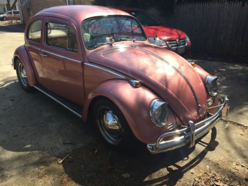 Regretfully my bug got on the chopping block list. I will consider keeping it if it does not sell here. History I was told by the PO that this bug originally came from New Mexico. I bought it from him and drove it to Chicago from Tennessee about 6 years ago. He told me that all glass are original and so are all metal except the right rear fender which had to be replaced from another bug. I have no reason to doubt him from inspection. PO painted inside and out with Desert Rose paint color and rust proofed underneath. He also installed drop spindle and skinny front tires and fat rears for the "hot rod" look. All interior was freshly done when I bought it and 6 volt was converted to 12 volt. Ignition relay was installed to protect the ignition switch. Points were upgraded to Pertronic electronic ignition. What I've done The car had 1600 mated to 6 volt transmission with bell housing ground out when I bought it. But it had bad end play and ran rough with oil dripping. I was surprised I actually made it home (6 hour drive). So I replaced both engine and transmission going back to 1200 and unmolested 6 volt transmission. I installed 6 volt flywheel with bigger 12 volt clutch (special flywheel from MOFOCO) and installed 6 volt starter with 12 volt solenoid. This spins the engine faster when starting but eliminate over active solenoid and still retain 6 volt teeth. I installed the thermostat with functioning air velocity ring for quicker warm up. The carburetor is a genuine German 28 PICT with 6 volt choke heater and step down register. Headlights were upgraded to quality HID system with high and low beams. I still have the original 12 volt sealed (non-halogen) headlights if you want them. Potentiameter was installed for wiper motor in place of step down register to give it a variable speed. An electric washer pump was installed instead of using air from the spare tire. A three point seat belt was installed on the driver side. Heater blower fans were installed in place of flex hose between the body to the engine. Condition This is probably one of the rare bugs that does not mark its spot. There are no oil drips. The engine purrs and starts immediately on the first crank. Transmission shifts accurate and smooth with no play in the shifter (for a bug anyway). Everything works except the horn. It was working last year so it must be contacts. The mileage listed is what is showing on the odometer and probably not the actual miles. I have not seen any rust as long as I've owned it but than everything was either painted or covered with under coating. The external paint now has chips and scratches. The body work by PO was not great and it was one of the things I was going to redo. Some external chromes have tiny rust dots everywhere. Brake fluid reservoir to master cylinder hose is leaking but the master cylinder is new. This is by no means show quality and by no means all original bug. But everything that was done can be easily reversed. What it needs Needs new 1200 tins (if you're going to keep it as 1200). It is fine and functional the way it is but I made them from 1600 tins so I would replace them. Needs more caster. The drop spindle mess it up. Touch up paint. Better chrome. Title is clear in my name in hand but tags are expired. I do require deposit of $1000 within 48 hours of auction end. You can fly in and drive it home anywhere and I can meet you at either O'Hare or Midway airport. I can assist in shipping but it is entirely your responsibility. Please note that it is at your own risk for purchasing 50 year old car. There are no warranty nor guarantee offered or implied. I've described everything as much as possible but please do ask if you have any questions or need pictures. Thank you. |