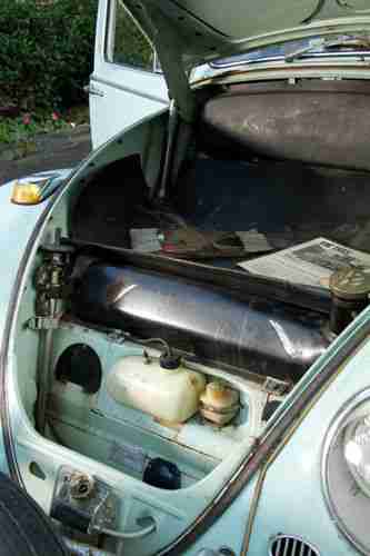 A PIECE OF HISTORY! We are the second owners of this vehicle which was purchased new by my aunts brother on May 14,1965 in Wittmund,Germany while he was stationed there. He retained ownership until we purchased it on March 10,1995. Our intent was to restore it back to its original splendor but unfortunately we haven't. It has been stored and only driven to keep things in running order. This would be a great project for the serious "bug" fan. Has original paint and interior but definitely needs some TLC. We have all of the original paperwork right down to the notebook the original owner recorded everything. The paperwork that came with the car is mostly in German or German/English. The VW was shipped to the US in August 1967 and arrived in Norfolk,Va. Sept. 1967. The only thing missing is the front fog light and the spare tire gas tank which were on the car when shipped, but were missing when the car arrived in Norfolk. This is verified on shipping papers. Even though the mileage is low, it was driven daily. The original owner was employed at local college in the same community he lives. Since coming to the US it has resided in NC. The vehicle does have some surface rust. The only rust through area is under the battery. Driveable but needs the brakes gone through. Radio does not work but have been told it is repairable.
