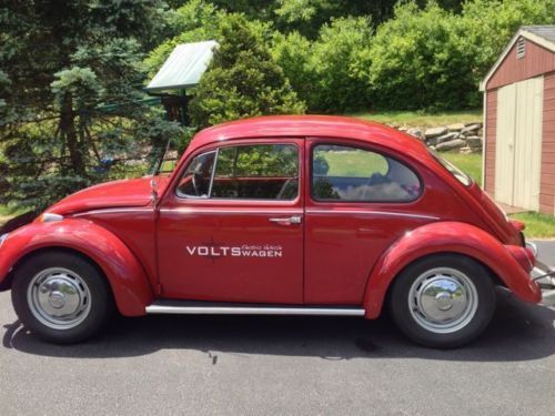 1967 Volkswagen (VOLTSwagen) Beetle, Body Restored. Converted to all electric drive. This car has been in our family since 1973. It can remain electric or we are willing to removed electric components and sell to be restored back to gas. Missing gas tank, gas motor, and carpet, but can be easily converted back to gas. We saved as much original as possible, but some replacements were improvements e.g. brand new wiring harness, anodized aluminum running boards, truck bed lined wheel wells and Por50 anti-rust coating on entire underbody. This is a great test/fun vehicle for anyone interested in electric vehicles or who wants to dabble in conversions. The body of the car is beautiful. This is a classic year for VW's and the pride of the restoration shows. New set of lead acid batteries (~$700) would give optimum performance for up to 45 mph and 25-30 practical mile range, however it currently runs as is. Future improvements were planned to give highway performance and greater range, but would require more investment. Inquire for details. We currently have a web page that details the conversion, but eBay will not let us post the website in the description for whatever reason. If you want to see this, just Google "Rehrig EV Conversion". Then click on the first link called "Paul Rehrig's 1967 Volkswagen Beetle EV Photo Album". Thanks. |
