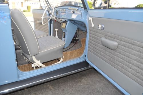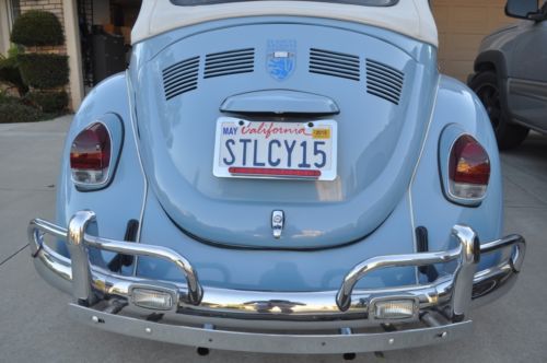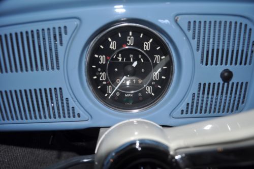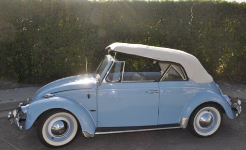 1969 Bug Convertible. Restored in 2013, body was taken apart and sand blasted, disc brakes all around, new gas lines, new brake lines, Engine/tranny rebuilt 2013, Optima battery, Coker Classic 165R1586S, new floor pans, sand blasted chassis & then powder coated, Line-X under the chassis/wheel fenders & inside engine compartment for lesser noise, sound deadening, custom upholstery, seat frames were sand blasted & powder coated, new top, top frame sand blasted & powder coated, new wood frame, sound system, Kenwood DNX6180, Infinity bass